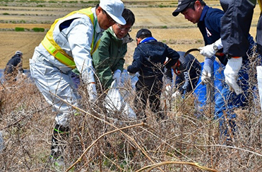 晴天に恵まれた当日は、現地を管理している相双建設事務所の方々から指導を受けながら、総勢約34人の参加者が、爽やかな汗を流しました。