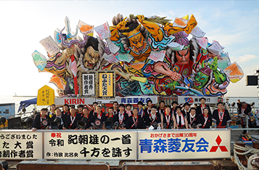 三菱電機東北支社グループは、三菱系列の企業をはじめ、地域の多くの企業により構成される青森菱友会 の一員として、青森ねぶた祭に毎年参加しております。今年は青森菱友会ねぶた出陣30周年の節目の年となりました。