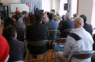 Sachiyoさんの透明感あふれるやさしい歌声とアジア色豊かな演奏に出席者の皆さんが耳を傾けていました。また、コンサートの合間にシンガポールの紅茶やお菓子、蘭の花が配られ、参加した皆と楽しい話に花が咲き、大変心温まる時間となりました。