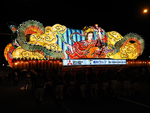東北支社は、三菱系列企業をはじめ、多数の地域の企業により構成される青森菱友会の一員として、毎年青森ねぶた祭に参加しています。地域とのつながりを大切にする青森菱友会のねぶたは、地域に密着した題材をテーマにしており、今回は青森市浅虫に祀られている八大龍王から『龍王』をテーマに制作されました。8月2日から7日まで運行(4日は青森菱友会運休日)し、3年連続となる最高賞「ねぶた大賞」と最優秀制作者賞(制作者:竹浪比呂央先生)を受賞しました(審査対象期間は2日~5日)。