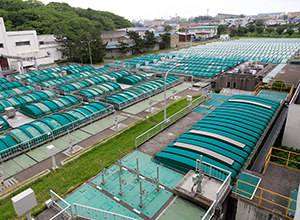 八橋下水道終末処理場は2系統の水処理施設を備え、八橋処理区(秋田駅西側の一部)の下水を処理しています。昭和45年4月に運転を開始しました。また、冬期間は処理水を利用した融雪(アメニティ下水道)を一部の地域で行っています。これまで長年にわたり秋田市の下水処理施設安定稼働に貢献して参りました。