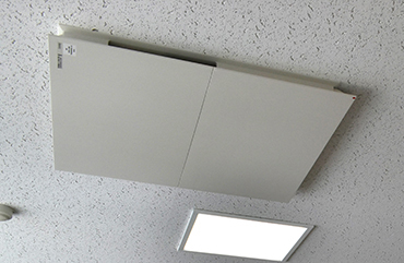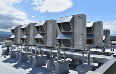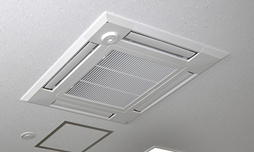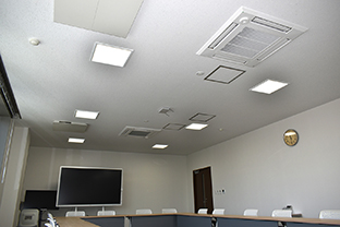 オフィスや会議室などの大空間には4方向天井カセット形、廊下など縦長な場所には2方向天井カセットを採用。どちらもムーブアイセンサー搭載で温度ムラや無駄のない空調を実施しています。