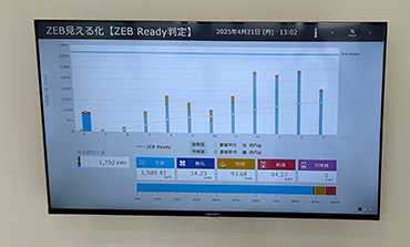 青森三菱電機機器販売株式会社様は、企業として環境目標を掲げており、従業員一人ひとりが環境問題に対して高い意識を持ち、積極的な取組みを行っています。同社の新社屋建替えにあたり、当社のZEB関連技術実証棟「SUSTIE」を視察し、青森県ではまだ数少ないZEB導入を決定しました。当社はZEBプランナーとして設計段階から参画し、ZEBの実現に貢献する複数の設備・システム(太陽光発電・空調・換気・照明ほか)を導入し、寒冷地という厳しい条件下においてNearly ZEBを実現しました。
