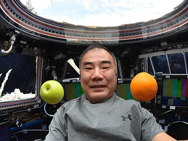 宇宙で新鮮な果物を楽しむ様子 (C)合同会社未来圏/JAXA/NASA