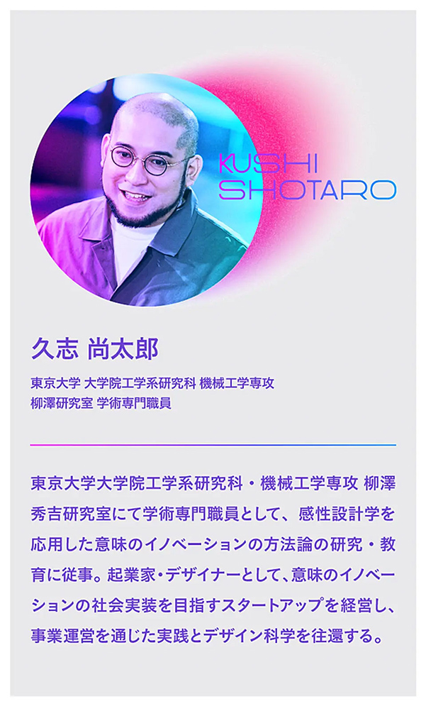 こう説明するのは、東京大学工学系研究科の学術専門職員で、デザイナーの久志尚太郎氏だ。意味をデザインし、それによって新たなプロダクト開発や市場創造を目指す「感性設計学を応用した意味のイノベーション」のメソッドづくりに長年取り組んでいる(感性設計学については後述)。