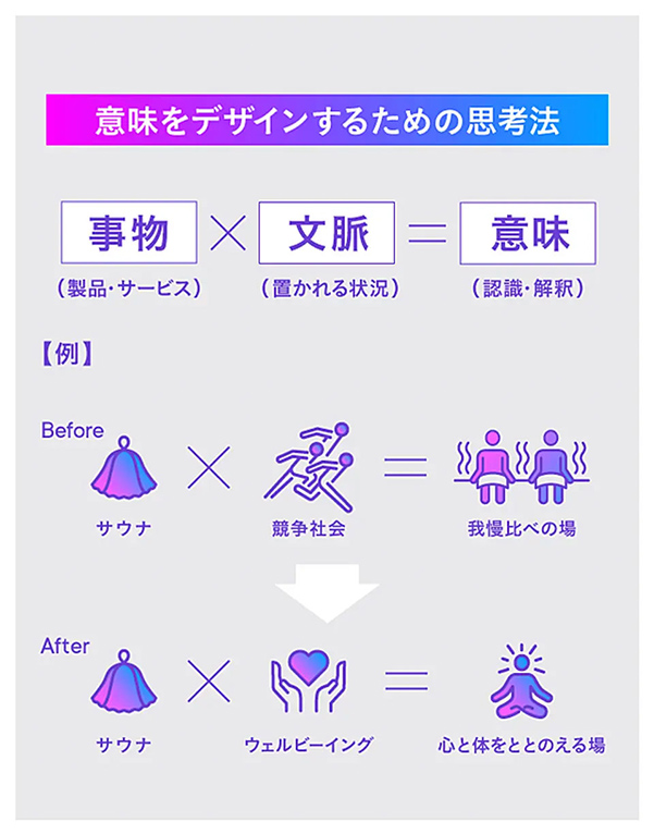 これらは新たな文脈が「発生」した例だが、文脈を「デザイン」することで、既存の製品・サービスであっても意味を変えられる。文脈は、意味をデザインする重要なカギになるのだ。