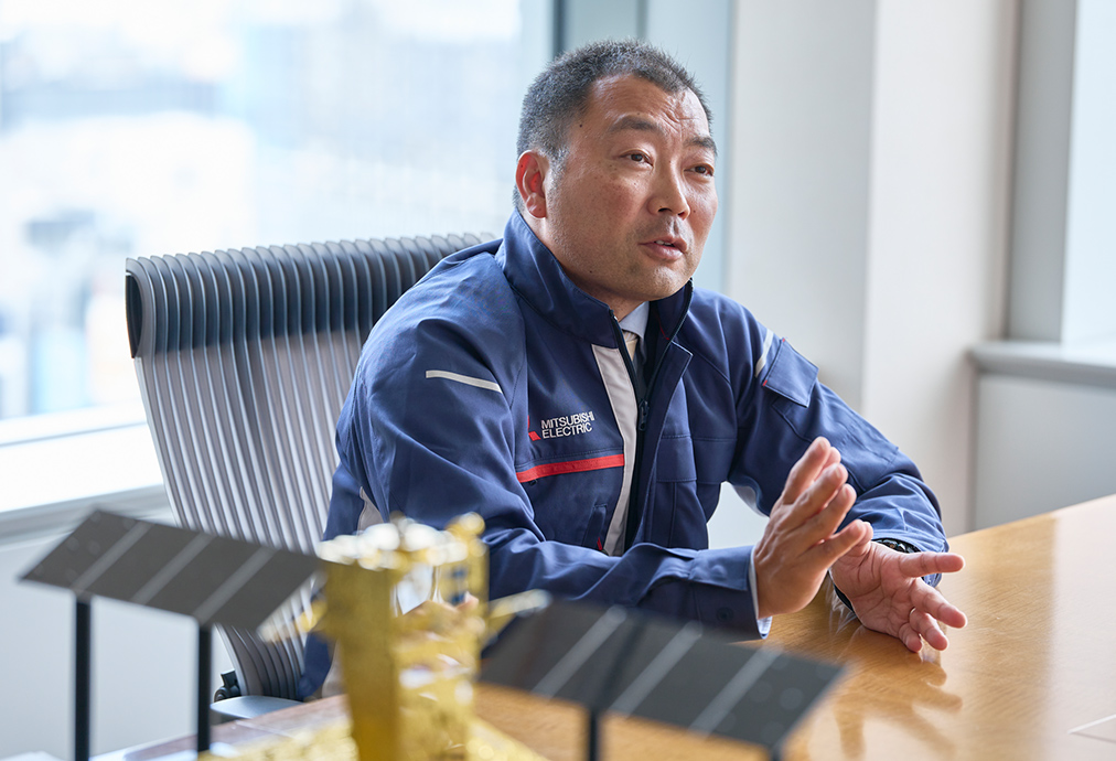 「『だいち4号』は素晴らしい性能を備えた衛星なので、とにかくちゃんと打ち上がって宇宙で実力を発揮してほしい。今はただ祈るような気持ちです」。打ち上げ直前の思いをこう話すのは、三菱電機 宇宙システム事業部 宇宙事業開発センターの副センター長を務める相良岳彦さんだ。「宇宙で働くものに携わる仕事がしたい」と三菱電機の宇宙部門を熱望し、入社以来ずっと人工衛星開発一筋のキャリアを歩んできた。