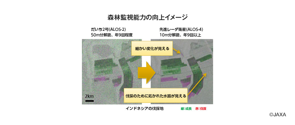 JAXAは国際協力機構(JICA)と共同で、世界の森林伐採を監視するための情報を提供している。その際に使われているのも、Lバンドによる観測データだ。