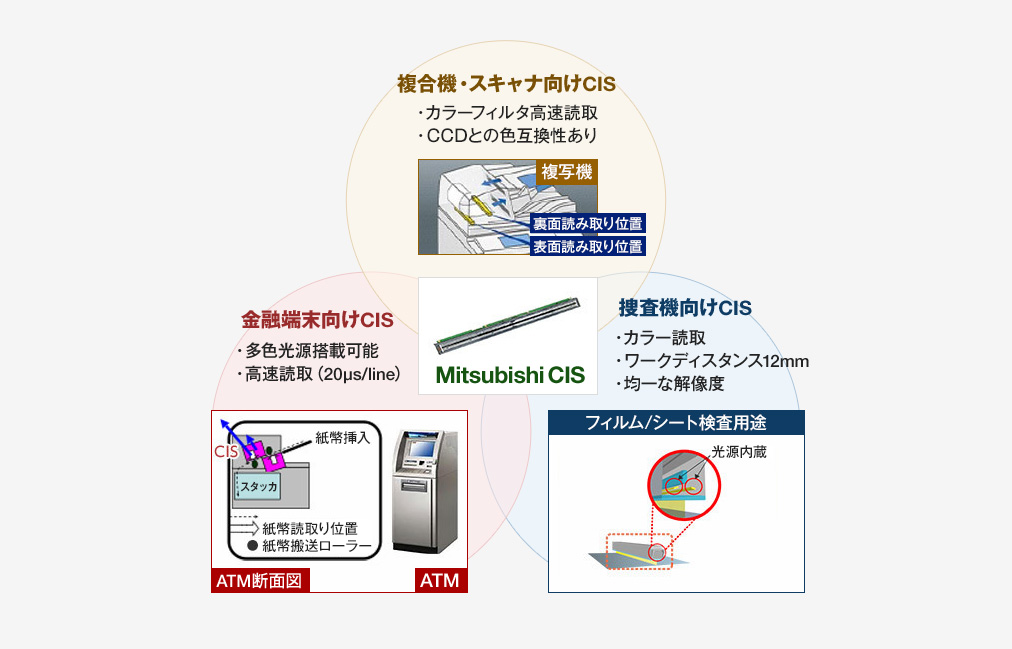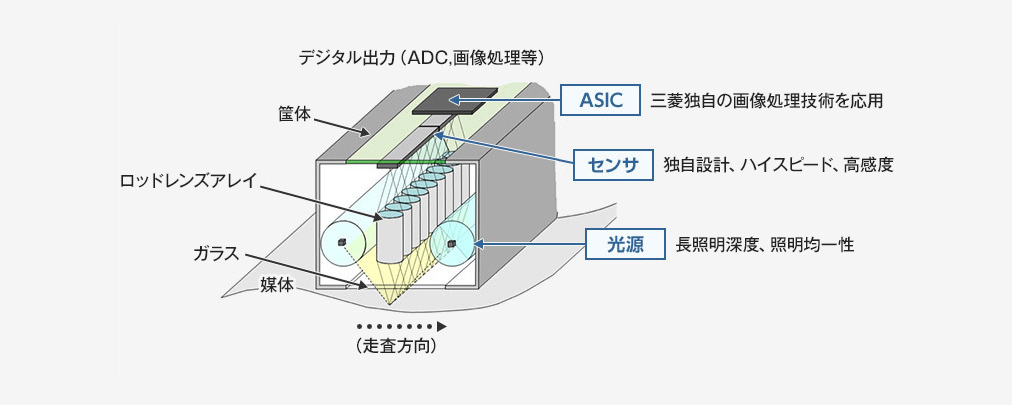 三菱電機は1986年から複合機やスキャナ、ATMなど高度な読み取り能力を求められる機器向けのCISを手掛けてきた。その後2013年に、他のメーカーに先駆けて外観検査用のCISを発売。ジクス製検査装置に搭載されているのもこのタイプだ。