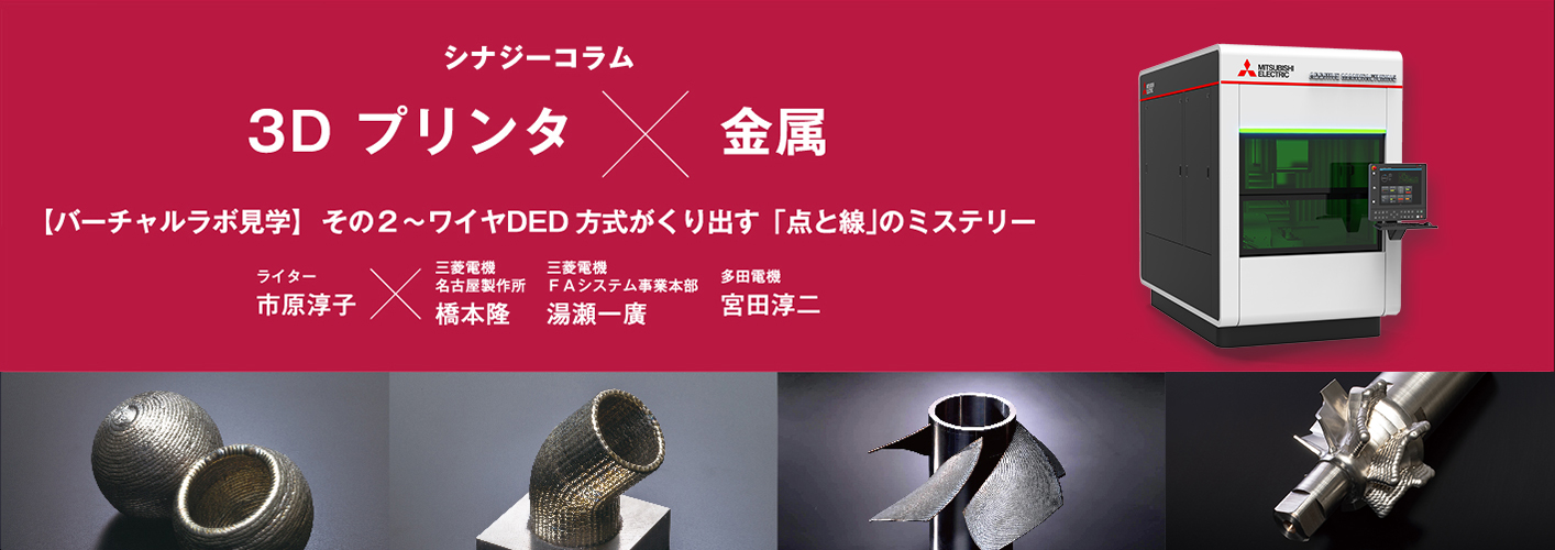 橋本:名古屋製作所ではレーザ加工機やワイヤ放電加工機などの産業メカトロニクス製品を製造していますから、レーザ発振器やワイヤを扱う基礎的な技術を持っています。また、NC(数値制御)による機械制御も得意としています。この3つの強みを結集して誕生したのが、この「三菱電機 ワイヤDED金属3Dプリンタ」です。