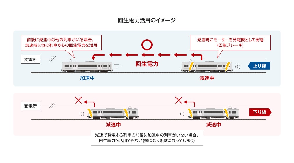 CO2の排出削減にはさまざまな手段がある中で、鉄道分野でもっとも代表的なのが「回生(かいせい)電力」の有効活用だろう。
