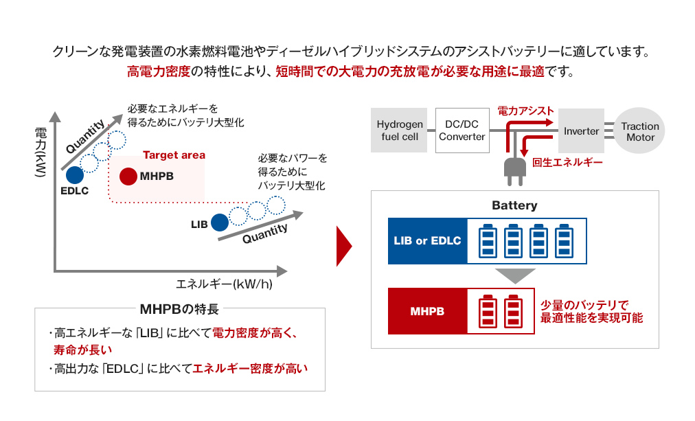 次世代蓄電モジュールMHPBは、すでに変電施設での電力の平準化による運送密度の増加、気動車や燃料電池車両のハイブリッド化、トラム(路面電車)の架線レス化など、国内外でさまざまな商談が進んでいるそうで、鉄道分野における脱炭素化に貢献することが期待される。完成は2026年度中の予定だ。