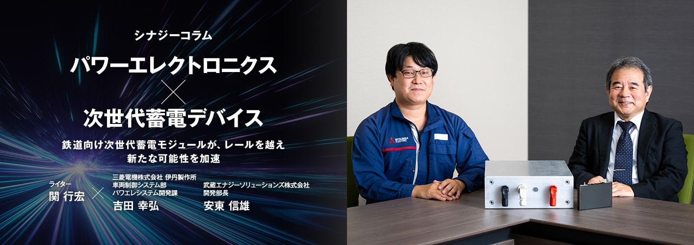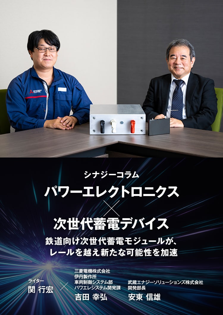 鉄道業界では、列車の減速時に生み出される回生電力を有効活用して、さらなる低炭素化を目指そうという動きが活発になっている。そうしたニーズに応えるために、三菱電機は武蔵エナジーソリューションズと共同で、回生電力の貯蔵に最適な次世代蓄電モジュールMitsubishi High Power Battery(以下、MHPBと略する)の開発を進めている。両社それぞれで開発を主導する二人に話を聞いた。