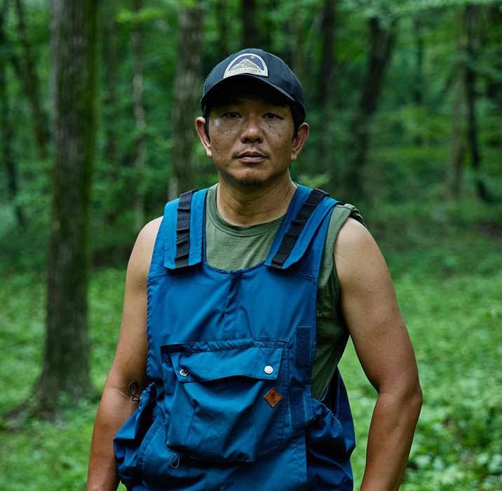 幼少期よりマタギに手ほどきを受け、山の知識を身につける。10代で渡米しブッシュクラフトに出会い、バグアウトやサバイバルスキルを専門機関で習得。帰国後、音楽誌やファッション誌のカメラマンを経て、山岳写真家に転向し、フィールドでの活動に尽力する。日本で最初に、メディアでブッシュクラフトを紹介。以降、災害時に使えるブッシュクラフトとバグアウトスキルの指導や、後世へ豊かな自然環境を残しつつ、災害の多い日本でも生き残る力を啓蒙するため、Bush Craft & Bug Out Schoolを運営するなどの活動をしている。