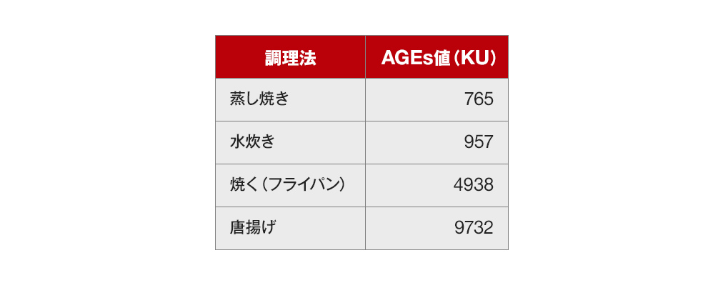 糖化を防ぐのに大切なのは、糖質の取り過ぎを避けることと、そしてAGEsは食品にも含まれているのでAGEsの多い食品の摂取を控えることです。こんがりとおいしそうな揚げ物にはAGEsが多く含まれています。揚げ物よりは焼き物の方がAGEsは少なく、さらには蒸し料理なら劇的にAGEsを少なくできます。この順番は覚えておくといいと思います。