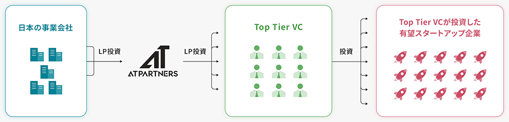 そこで我々が取り組んでいるのが「ファンド・オブ・ファンズ」という方式です。これは、日本の事業会社から出資を受けて、海外のトップティアVCファンドに投資します。実際に米国のNEA、General Catalyst、Spark Capitalなどに出資してきています(その他開示不可の複数トップティアVCへの出資もあり)。