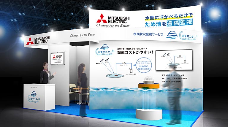 ブイ型水面センサをため池の水面に浮かべ、ため池の水位などを測定し、リアルタイムで監視。スマートフォンやタブレットPCから、いつでも、どこでも状況を確認できる「三菱電機 水面状況監視サービスみなモニター」を実機の展示と共に詳しくご紹介いたします。