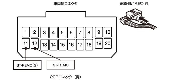 - ※ナビ設定の日産(8KEY TYPE)、日産(9KEY TYPE)を使用する場合はST-REMO1コード・ST-REMO2コード・ ST-REMO(G)コードを接続します。