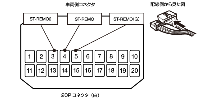 - ※ナビ設定の日産(8KEY TYPE)、日産(9KEY TYPE)を使用する場合はST-REMO1コード・ST-REMO2コード・ ST-REMO(G)コードを接続します。