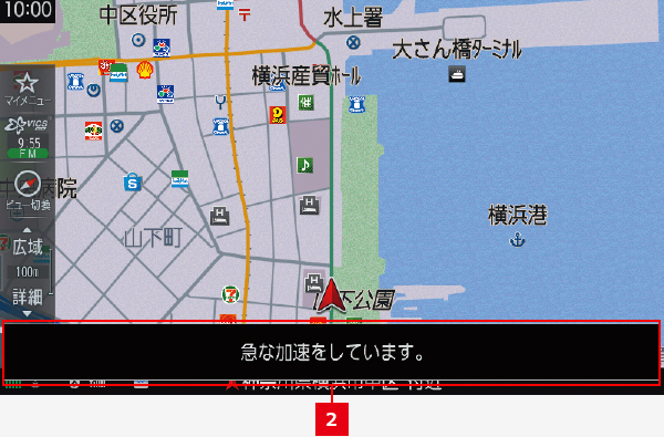 急発進や急加速、急減速など運転状態の改善を画面と音声でアドバイス。