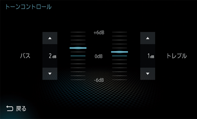 低音域(100Hz)と高音域(10kHz)の音量を調整し、音のバランスを整えることができます。強調、減衰を1dBステップで最大6dBの調整が可能です。