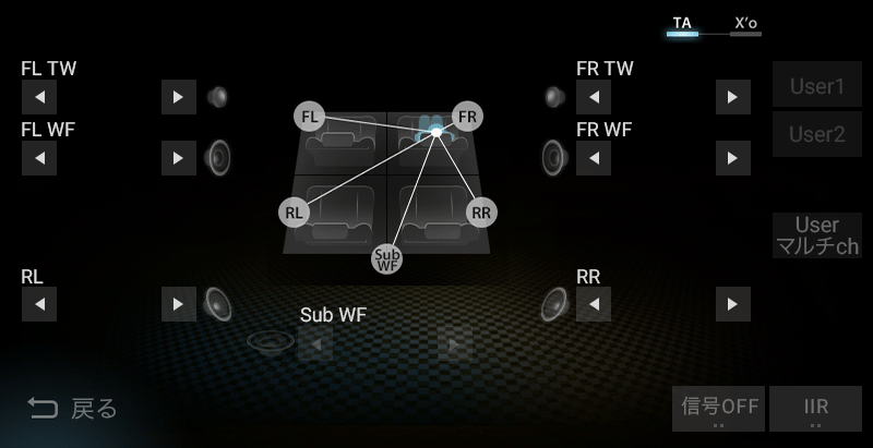 ※リアスピーカーなしの場合、リアスピーカーのタイムアライメントの数値を設定いただく必要はございません。