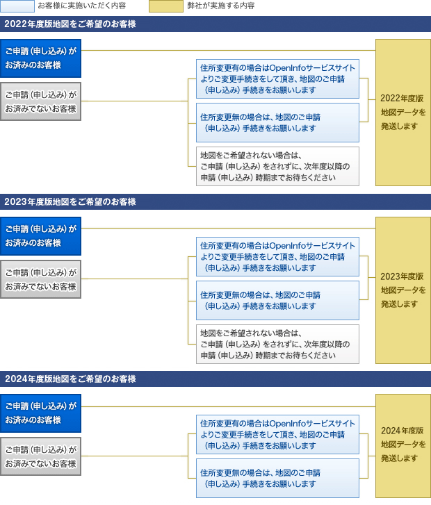 2024年1月末頃 ※2022年度版地図送付は上記期間が最終となります。 |