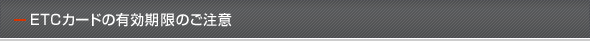 有効期限切れのETCカードは、使用できません。お手持ちのETCカードに記載された有効期限をあらかじめご確認ください。
