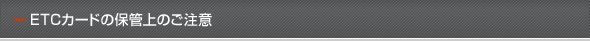 ETCカードを車載器に挿入したまま車内に放置すると、カードが高温で変形し、車載器が正常に動作しなくなることがあります。また、ETCカードに強い力を加えることもカード変形の原因となりますので取扱いにはご注意下さい。