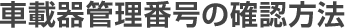 - ※2 上記リストは音声、もしくは表示により車載器管理番号が確認可能なモデルです。 上記リスト以外の市販モデルについては車載器による確認ができませんので、本体ラベルに記載されている車載器管理番号をご確認願います。尚、フロントガラス貼付モデル、及びダッシュボード設置モデルは本体ラベルの上にマスキングテープを上貼りしている場合がありますので、はがして頂ければ確認可能です。