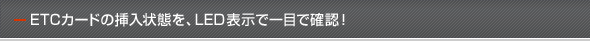 本体LEDとブザー音により、ETC車載器やカードの異常など、さまざまなお知らせを発信します。