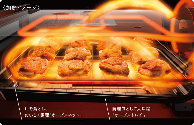 「びっクリアオーブン」は、庫内で熱風を循環させて加熱するので、ヘルシーなノンフライ調理を手軽に実現。子どもたちが大好きなとんかつや唐揚げも、油を使わずにカラッと仕上がり、サクッとおいしくいただけます。余分な脂は調理中にしっかり落とされるため、カロリーを気にする心配もありません。油の扱いや片付けに困らないノンフライなら、調理のハードルもぐっと下がり、新しいレパートリーが増えることも間違いなし。揚げ物を一品加えたメニューなどにも気軽に挑戦できそうです。