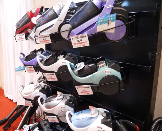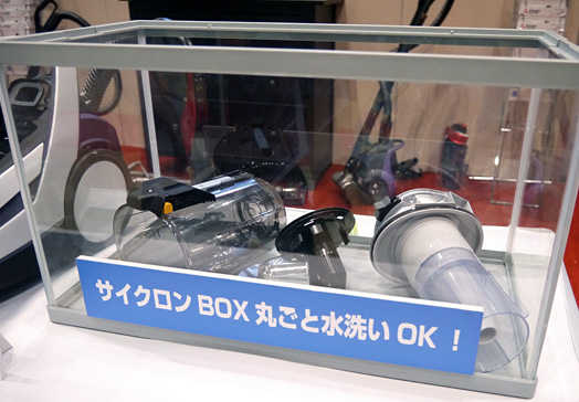 説明員:掃除機の排気がにおうのは、内部で風がゴミをかき混ぜるため。その点、「風神」は風が通る旋回部とゴミをためる集じん室を分離した構造になっているので、ニオイが発生しにくいんです。