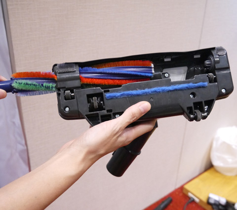 ペットを飼っている方にうれしいのが、三菱独自の「毛がらみ除去」機能。ヘッドの回転ブラシに絡んだ犬や猫の毛も、回転ブラシを引き抜くだけで簡単に取れちゃうんです。もちろん、人間の髪の毛だって同じように取り除けるから、お掃除後のお手入れがらくらく!