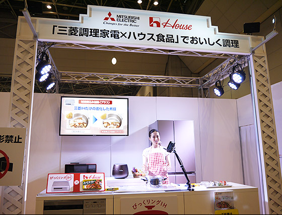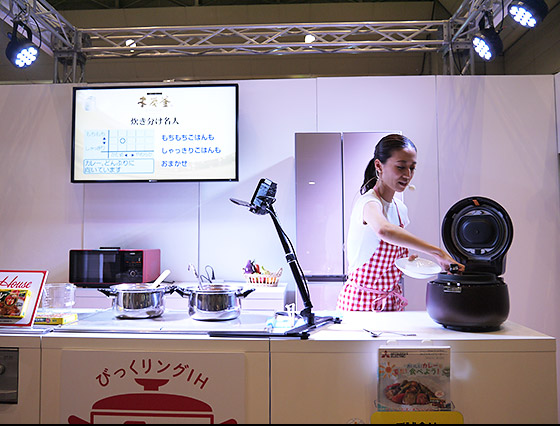 その場で調理をしながら機種や機能を紹介。湯気や香りの立ちこめる臨場感のあるステージでした。