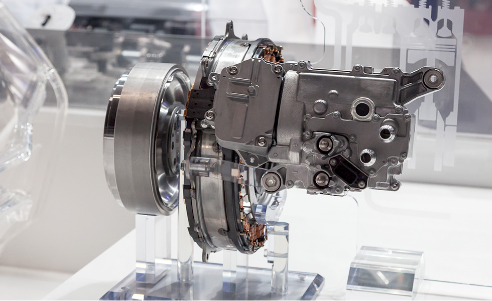 最初に電動化のコーナー。EV(電気自動車)やPHV(プラグインハイブリッド自動車)の心臓部です。未来のクルマ社会に欠かせない重要な技術であるとともに、低炭素化・持続可能な社会をつくるうえでも大切な技術です。