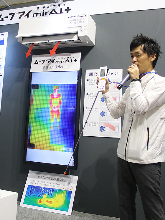 会場では、「ムーブアイmirA.I. +」による気流検出デモのほか、スマホを使った「サーモでみまもり」機能も体験。快適さに加えて安心面でも心強い「霧ヶ峰」の進化を実感することができました。