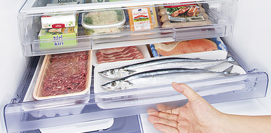 1.肉や魚を生のままおいしく長く保存/冷凍食材をおいしく解凍できる、「氷点下ストッカーD A.I.」(CX37M・CM33M)/「氷点下ストッカー」(CX30M・CX27M)