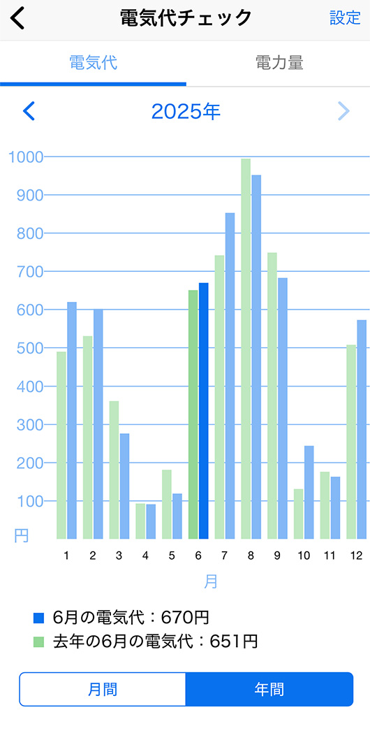 従来の電気代や電力量の月別表示に加え、新たに日別表示にも対応※4しました。また、日別の電気代や電力量の推移や前年同月との比較も可能になり、節電状況の可視化で日々の節電をサポートします。