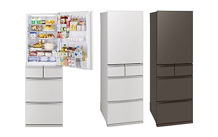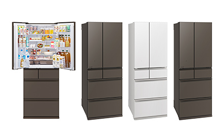 新搭載の「できちゃうV冷凍」で野菜の使い切り・時短調理をサポート。大容量の冷凍室でまとめ買いも安心。冷凍室が真ん中タイプ。