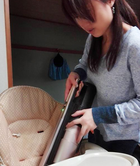 ソファやベビーカー、ベビーチェアを掃除する時には、ハンディタイプにして使っています。特にベビーチェアは、パンの食べこぼしなどが溜まりやすく、その都度掃除をしています。気づいた時にサッと取り出せるので、大変便利です。