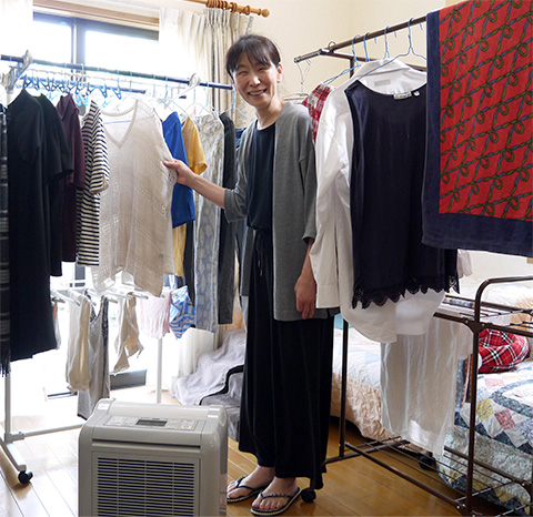 厚手の洗濯物は、除湿機の正面に干す!