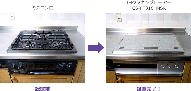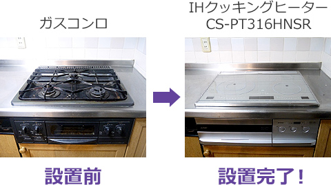 - 以前からIHに切り替えたいと思っていたのですが、ふみきれずにいました。今回、モニターとして設置することになり、どのように取り付けが進むのか心配でしたが、ガスコンロを入れ替えるだけで、後付け感もなくすっきりと収まるようにできたことが何より驚きました。キッチンが明るくすっきりして本当にうれしいです!