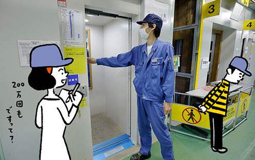 - はい、昇降時の振動を抑えているか、扉を強く押した時に外れないか、また、何度も上げ下げを繰り返して、駆動機のギアの磨耗をチェックしたりしているんですよ。