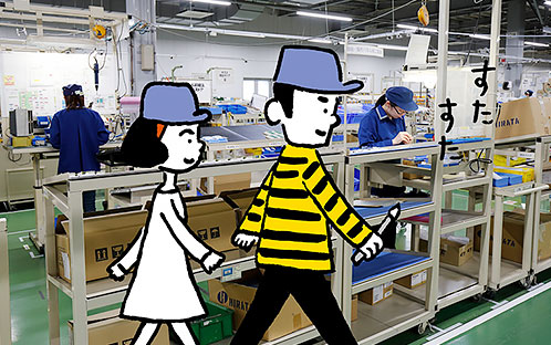 - では、ホームエレベーターの要、電気機器製造ラインからは、再び原田(工場の天使)が案内しますね。