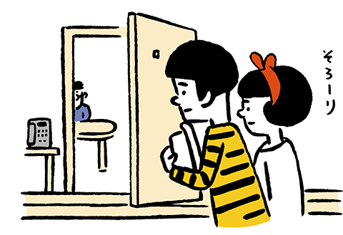 - シーッ!聞こえますよ。アレ?あの人が案内してくれるのかしら?
