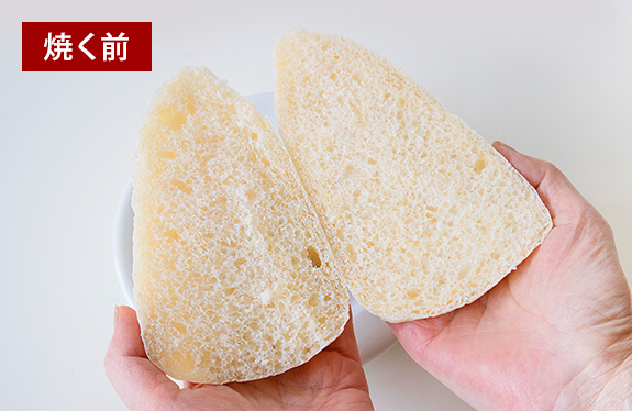 焼くとまず、表面の生地にピンと張りが出ます。中面も2日目とは思えないほど水分がしっかり残っていてふっくら!味はもっと驚きでした。まるで、焼きたての自家製パンの粗熱がとれて丁度食べごろになったときの食感でした。従来のトースターでは、一度も感じることのなかった香りと焼き上がりです。