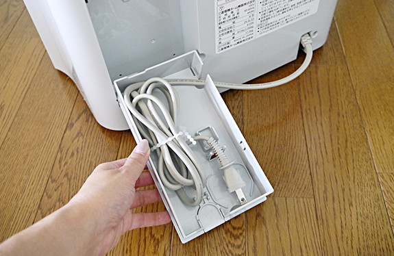 コードをしまいやすいように収納ボックスがあるのは、便利。コードの周りはホコリが付きやすいから、こういう細かい配慮はうれしいです。