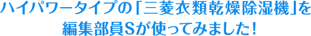 洗濯物のニオイや仕上がり具合にはこだわるけれど、除湿機を使うのは初めてという編集部員Sが、ハイパワータイプの「三菱衣類乾燥除湿機」を使った感想をレポートします!