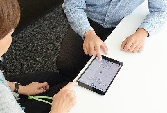 2019年6月、兼松コミュニケーションズ(株)※2が「しゃべり描き®アプリ」の商用開発および事業化を行い、iOS®を搭載したスマートフォンやタブレット向けに提供を開始しました。